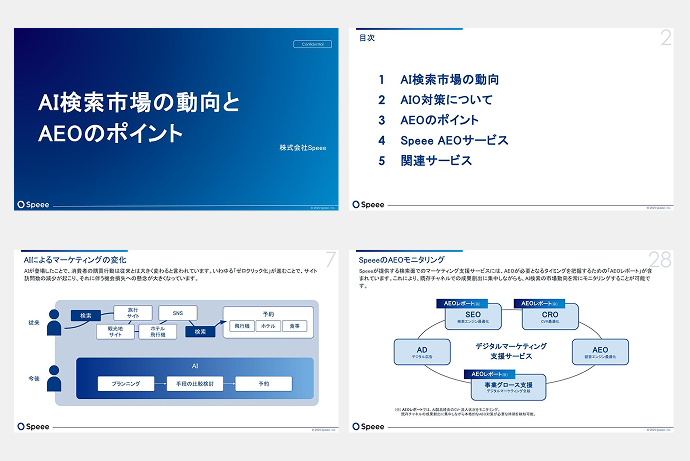 AI時代に向けたサイト最適化 AEOコンサルティングサービスの概要やAEOについての考え方をご紹介します。